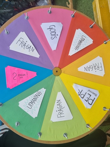 Bildtext: I Pridetältet kan man bland annat snurra på Lyckohjulet.